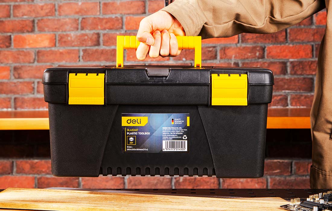 DELI Plastic Tool Box Deli Tools EDL432417, 15” (yellow)